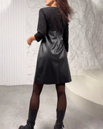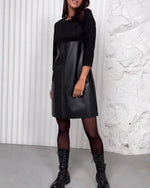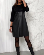 Patchworkkjole med nederdel i kunstlæder