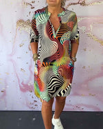 SPECIFIKATIONER Stil: Afslappet Materiale: Bomuldsblanding Kjoletype: Shift-kjole Kjolelængde: Midi Mønstertype: Tryk Ærmetype: Almindeligt ærme Ærmelængde: Trekvartærmet Detaljer: Lomme,Uregelmæssig,To falske stykker Pasform: Almindelig Sæson/årstid: Forår,Sommer,Efterår Lejlighed: Daglig Pakken inkluderer: 1 x Kjole STØRRELSESTABEL (cm) St...