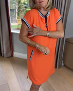 SPECIFIKATIONER Stil: Afslappet Materiale: Bomuldsblanding Kjoletype: Shift-kjole Kjolelængde: Over knæet Halsudskæring: Rund hals Mønstertype: Farveblok Ærmetype: Almindeligt ærme Ærmelængde: Kortærmet Detaljer: Lomme Pasform: Almindelig Sæson/årstid: Forår,Sommer Lejlighed: Daglig Pakken inkluderer: 1 x Kjole STØRRELSESTABEL (cm) Størrelse...