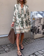 SPECIFIKATIONER Stil: Afslappet Materiale: Bomuldsblanding Kjoletype: Shift-kjole Kjolelængde: Knælængde Halsudskæring: V-udskæring Mønstertype: Tryk Ærmetype: Almindeligt ærme Ærmelængde: Trekvartærmet Detaljer: Knapper,Rynket Pasform: Almindelig Sæson/årstid: Forår,Sommer Lejlighed: Daglig Pakken inkluderer: 1 x Kjole STØRRELSESTABEL (cm) ...