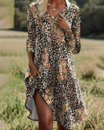 SPECIFIKATIONER Stil: Afslappet Materiale: Bomuldsblanding Kjoletype: Shift-kjole Kjolelængde: Maxi Halsudskæring: V-udskæring Mønstertype: Tryk,Leopard-print Ærmetype: Almindeligt ærme Ærmelængde: Trekvartærmet Detaljer: Knapper Pasform: Almindelig Sæson/årstid: Forår,Sommer Lejlighed: Daglig Pakken inkluderer: 1 x Kjole STØRRELSESTABEL (cm) ...