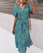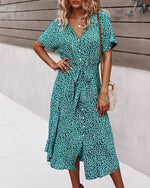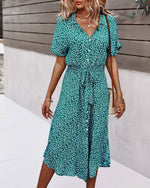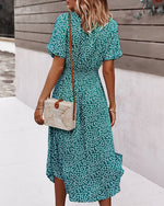 Koertærmet kjole med korte ærmer, nippet talje og blomsterprint