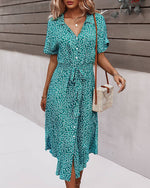 SPECIFIKATIONER Stil: Afslappet Materiale: Bomuldsblanding Kjoletype: Shift-kjole Kjolelængde: Knælængde Halsudskæring: V-udskæring Mønstertype: Tryk Ærmetype: Almindeligt ærme Ærmelængde: Trekvartærmet Detaljer: Knapper,Rynket Pasform: Almindelig Sæson/årstid: Forår,Sommer Lejlighed: Daglig Pakken inkluderer: 1 x Kjole STØRRELSESTABEL (cm) ...