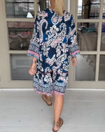 Kjole med paisley print og v-udskæring
