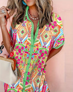 Kjole Korte Ærmer Knapper Print
