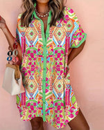 Kjole Med Revers Farverigt Trykt Skjorte
