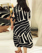 SPECIFIKATIONER Stil: Afslappet Materiale: Bomuldsblanding Kjoletype: A-linje Kjolelængde: Maxi Halsudskæring: V-udskæring Mønstertype: Tryk Ærmetype: Drop Shoulder Ærmelængde: Trekvartærmet Detaljer: Knapper Pasform: Almindelig Sæson/årstid: Forår,Sommer Lejlighed: Daglig Pakken inkluderer: 1 x Kjole STØRRELSESTABEL (cm) Størrelse Buste Læn...