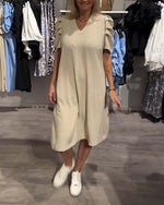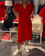 Kjole Puffærmer V-Hals Temperamentsfuld