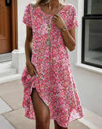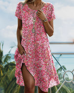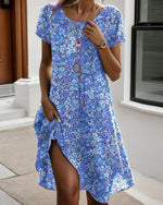 Kjole Rund Hals Kort Ærme Blomstertryk
