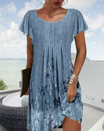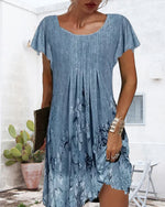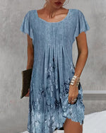 Kjole Rund hals Trykket Korte ærmer Hofte