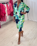 SPECIFIKATIONER Stil: Afslappet Materiale: Bomuldsblanding Kjoletype: Shift-kjole Kjolelængde: Midi Mønstertype: Tryk Ærmetype: Almindeligt ærme Ærmelængde: Trekvartærmet Detaljer: Lomme,Uregelmæssig,To falske stykker Pasform: Almindelig Sæson/årstid: Forår,Sommer,Efterår Lejlighed: Daglig Pakken inkluderer: 1 x Kjole STØRRELSESTABEL (cm) St...