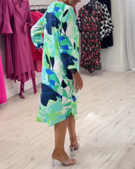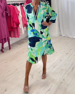 Kjole Stehkrave Trekvartsærmer Digitaltryk