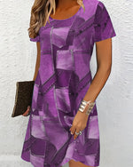 SPECIFIKATIONER Stil: Afslappet Materiale: Bomuldsblanding Kjoletype: Shift-kjole Kjolelængde: Over knæet Halsudskæring: Rund hals Mønstertype: Tryk Ærmetype: Almindeligt ærme Ærmelængde: Kortærmet Detaljer: Lomme,Flænge Pasform: Almindelig Sæson/årstid: Forår,Sommer Lejlighed: Daglig Pakken inkluderer: 1 x Kjole STØRRELSESTABEL (cm) Stø...