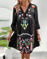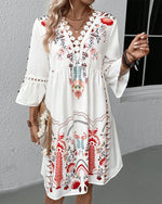 Kjole V-hals Kniplingssyning Afslappet Alsidig Trykt