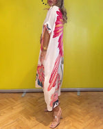 SPECIFIKATIONER Stil: Afslappet Materiale: Bomuldsblanding Kjoletype: Shift-kjole Kjolelængde: Maxi Halsudskæring: V-udskæring Mønstertype: Tie Dye Ærmelængde: Kortærmet Detaljer: Lomme Pasform: Almindelig Sæson/årstid: Forår,Sommer Lejlighed: Daglig Pakken inkluderer: 1 x Kjole STØRRELSESTABEL (cm) Størrelse Buste Længde S 97 132 M 101 ...
