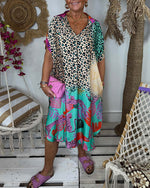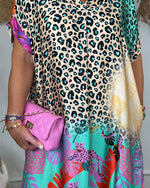 Patchwork kjole med delvist leopardprint