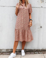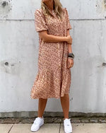 Kjole Mode Korte Ærmer Blomstertryk