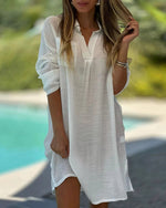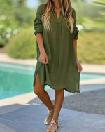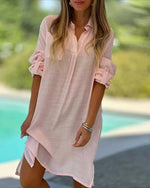 Skjortekjole Løs Kortærmet Ensfarvet Bomuld Og Hør