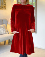 Velourkjole med lommer og rund hals