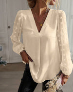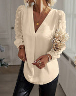 Blouse 3d-Bloem Ballonmouwen V-Hals