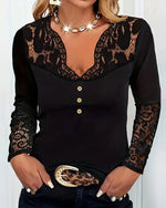 Revers-Paillet-Langærmet Bluse