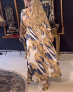 SPECIFIKATIONER Stil: Afslappet Materiale: Bomuldsblanding Kjoletype: Shift-kjole Kjolelængde: Maxi Halsudskæring: V-udskæring Mønstertype: Farveblok Ærmetype: Almindeligt ærme Ærmelængde: Trekvartærmet Detaljer: Lomme Pasform: Almindelig Sæson/årstid: Forår,Sommer Lejlighed: Daglig Pakken inkluderer: 1 x Kjole STØRRELSESTABEL (cm) Størrelse...