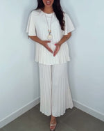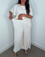 Ribmønstret to-delt sæt | Hvide bukser og bluse