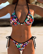 SPECIFIKATIONER Stil: Ferie Materiale: 15% Spandex,85% Polyester Lejlighed: Ferie Halsudskæring: Halsstrop Mønstertype: Blomster-(garment type),Tryk Ærmelængde: Uden ærmer Top type: Bikini,Tildækning BH Type: Stropløs BH Underdel type: Naturlig Pasform: Almindelig Sæson/årstid: Forår,Sommer Detaljer: Rygløs,Snøre op Pakken inkluderer: 1 x Biki...