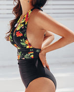 Blomstret badedragt med dyb V-udskæring