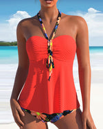 Halterneck tankini med blomsterprintede shorts