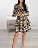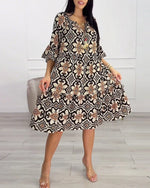 Knælang kjole med vintageprint