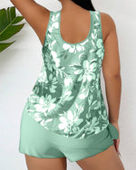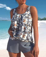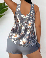 Casual blomstermønstret tankini m/shorts