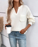SPECIFIKATIONER Kategori: Sweatre Stil: Afslappet Materiale: Strik Halsudskæring: V-udskæring Mønstertype: Ensfarvet Ærmetype: Almindeligt ærme Ærmelængde: Langærmet Detaljer: Spænde,Udhulende Pasform: Almindelig Lejlighed: Daglig Sæson/årstid: Forår,Sommer,Efterår Pakken inkluderer: 1 x Sweater STØRRELSESTABEL (cm) Størrelse Buste Læng...