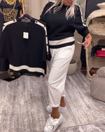 Sort sweater med hvid stribekant