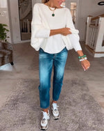 Sweater Rund Halsudskæring Stort Blomstermønster Udskåret