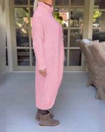 Ensfarvet sweaterkjole med uregelmæssig søm