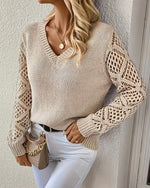 V-Halset Strikket Sweater Med Åbent Mønster