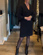 Ensfarvet sweaterkjole med uregelmæssig søm
