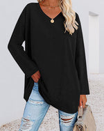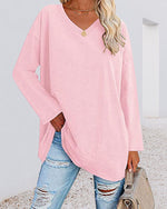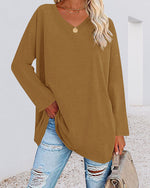 T-Shirt V-Hals Rullet Kant Korte Ærmer Los