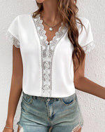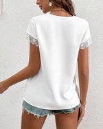 SPECIFIKATIONER Top type: T-shirt Stil: Afslappet Materiale: Bomuldsblanding Lejlighed: Daglig Halsudskæring: V-udskæring Mønstertype: Ensfarvet Ærmetype: Almindeligt ærme Ærmelængde: Kortærmet Pasform: Almindelig Sæson/årstid: Forår,Sommer Detaljer: Patchwork Pakken inkluderer: 1 x T-shirt STØRRELSESTABEL (cm) Størrelse Buste Længde S 97 ...