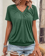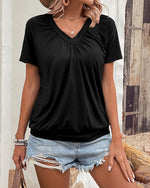 T-Shirt V-Hals Rullet Kant Korte Ærmer Los