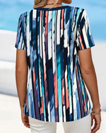T-Shirt V-Hals Farverig Stribet Alsidig