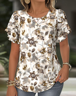T-Shirt Blomstermønster V-Hals Korte Ærmer