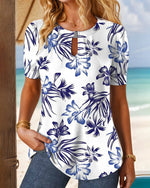 T-Shirt Blomstermønster V-Hals Korte Ærmer
