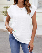 SPECIFIKATIONER Top type: T-shirt Stil: Afslappet Materiale: Bomuldsblanding Lejlighed: Daglig Halsudskæring: Rund hals Mønstertype: Ensfarvet Ærmetype: Pjuskærmer Ærmelængde: Kortærmet Pasform: Almindelig Sæson/årstid: Forår,Sommer Detaljer: Pjusket,Udhulende Pakken inkluderer: 1 x T-shirt STØRRELSESTABEL (cm) Størrelse Buste Længde S 97 ...