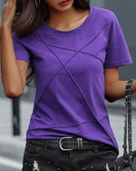 T-Shirt Kortærmet Ensfarvet Patchwork