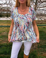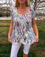T-Shirt Blomstermønster V-Hals Korte Ærmer