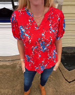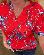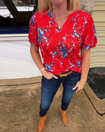 T-Shirt Blomstermønster V-Hals Korte Ærmer