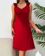 SPECIFIKATIONER Stil: Sexet Materiale: Polyester Kjolelængde: Over knæet Halsudskæring: V-udskæring Mønstertype: Ensfarvet Ærmelængde: Uden ærmer Pasform: Almindelig Sæson/årstid: Forår,Sommer,Efterår,Vinter Lejlighed: Daglig Pakken inkluderer: 1 x Søvn kjole STØRRELSESTABEL (cm) Størrelse Buste Længde S 84 80 M 88 82 L 94 84...