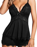 Natteøjne Knipling V-Hals Sløjfe Dekoration Ærmeløs Babydoll Sexig Gennemsigtig Teddy